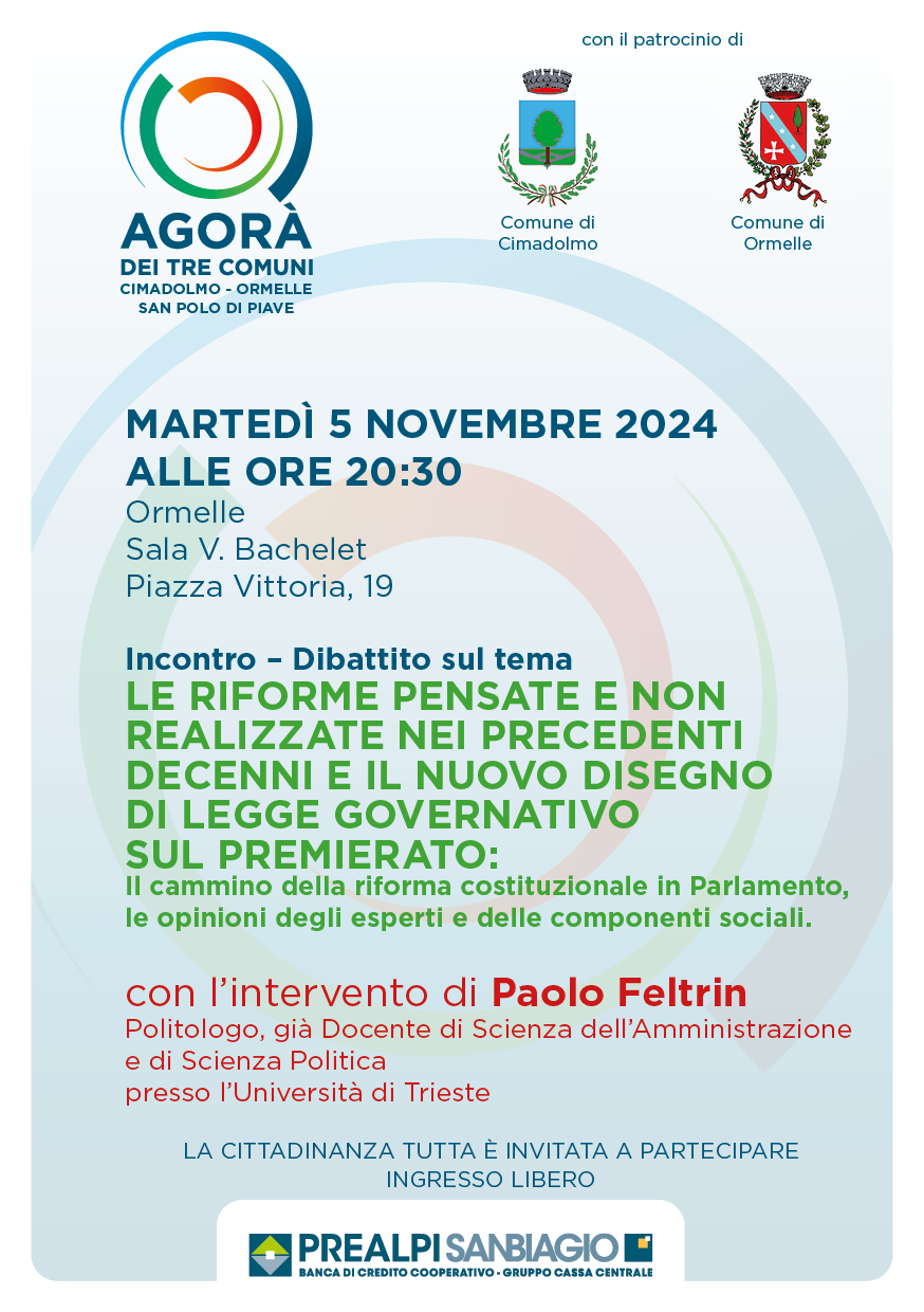 Incontro-dibattito – “Le riforme pensate e non realizzate nei precedenti decenni e il nuovo disegno di legge sul Premierato”